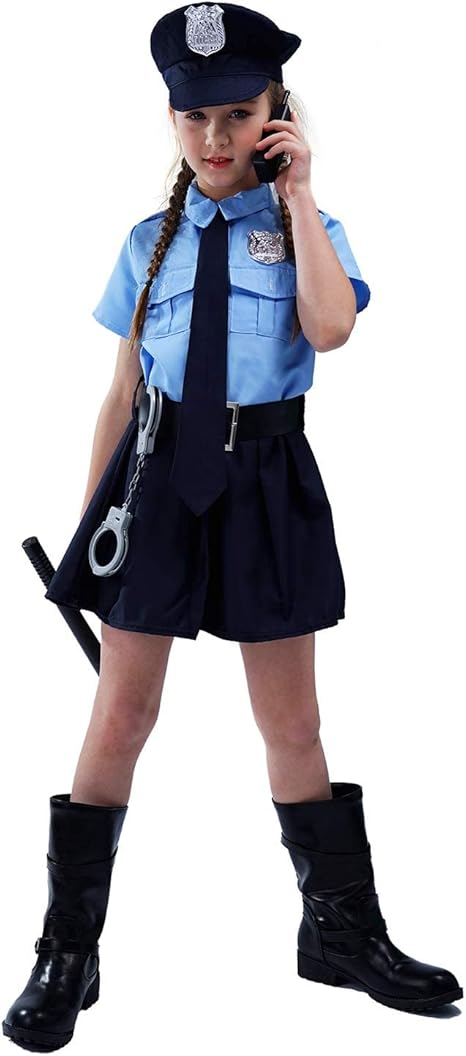 Transformez votre enfant en véritable gardienne de la loi avec ce déguisement de policière pour fille. L’ensemble comprend une chemise bleu clair avec écusson argenté, une jupe bleu marine, une cravate assortie, une ceinture avec accessoires (menottes factices, matraque) et une casquette de police pour un look réaliste. Confortable et bien ajusté, ce costume est idéal pour les anniversaires, carnavals, Halloween, fêtes déguisées ou jeux de rôle à la maison.