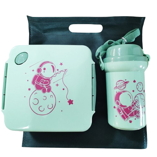 Avec son design ludique d’astronaute explorant la lune et les planètes, ce kit combine originalité, praticité et résistance. Fabriqué en plastique alimentaire sûr et durable, il est facile à nettoyer et parfait pour l’école, les sorties et les voyages.